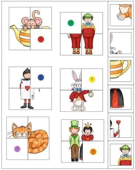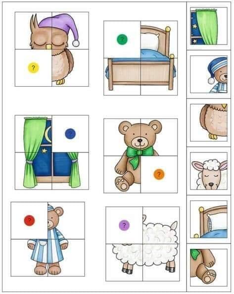 Wydrukuj ćwiczenia poniżej. Wytnij małe elementy, których brakuje na obrazkach. Wręcz dziecku klej a jego zadaniem jest dopasowanie fragmentów obrazka, tak, aby stanowił całość.