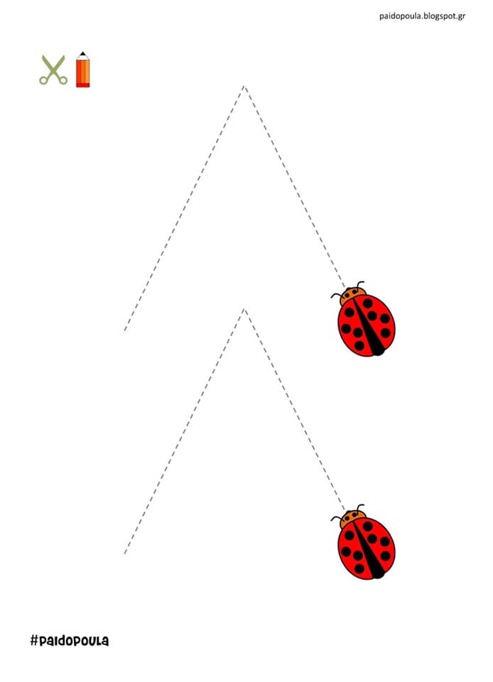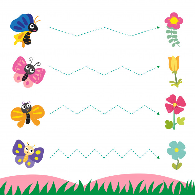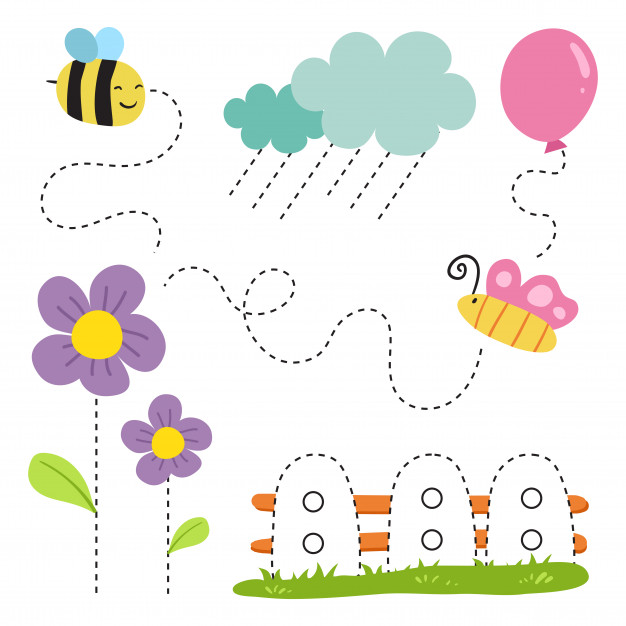 Wydrukuj dziecku ćwiczenia poniżej. Na początku trzymaj dziecko za rączkę i paluszkiem śledź bieg linii. Gdy dziecko obędzie się z kształtem linii, daj dziecku kredkę (dbając o prawidłowy chwyt), na początku możesz pomóż dziecku, później niech działa już samodzielnie. Łączcie kropeczki lub linie tworząc piękne obrazki.